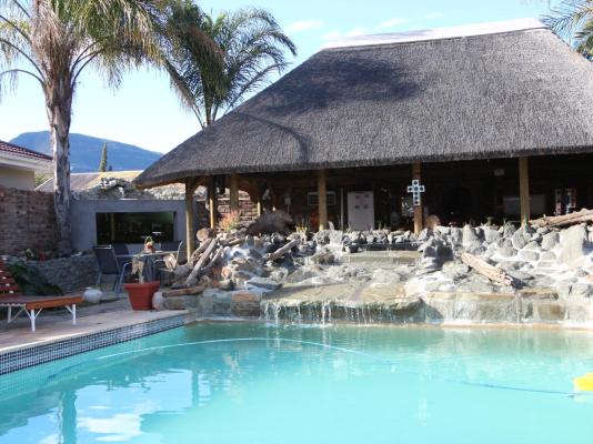 The thatched roof Lapa next to the pool is the ideal open-air conference venue in Graaff-Reinet. It can accommodate up to 20 guests.