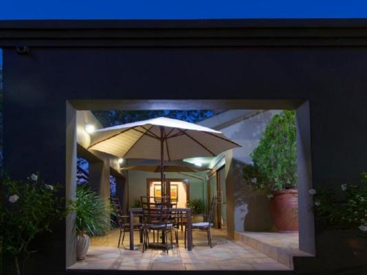 Double bed bedroom on the first floor with a view of the courtyard garden with Shower. Air conditioning, bathroom amenities, coffee/tea maker, TV & DStv, free Wifi- & Internet Access