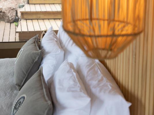 In the evenings, guests can relax at the fire pit and enjoy the roaming game. Wake up to the sound of a black-headed oriel and go to sleep at night to the cry of a fiery-necked night jar after a day of walking our well-indicated trails or cycling our gravel tracks. Or simply soaking up the bush on a comfortable lounger next to your private plunge pool.