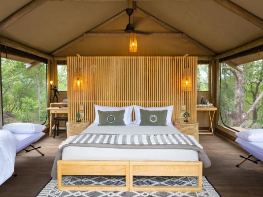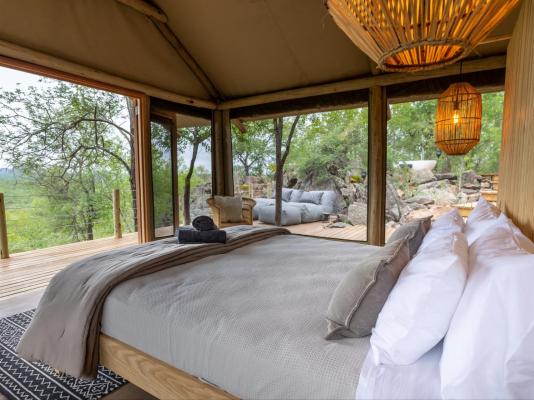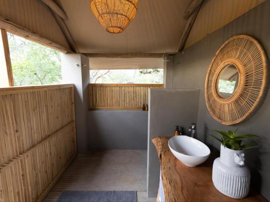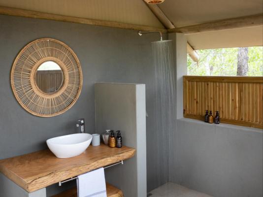 Guests will enjoy magnificent views, unspoilt bush and beautiful amenities when booking the accommodation at Bushveld Bivouac. With every detail lovingly considered, each sites offers 2 large, comfortable, 25m2 tents that have high-speed Wi-Fi, private bathrooms, kitchens, plunge pools and fire pits. The sleeping tents are furnished with king-size beds made up of glorious pure cotton linens, ceiling fans, dressing areas and gorgeous custom-made gowns, bathroom and swimming towels are provided. The beautiful bathrooms feature large Italian showers, toilets positioned to benefit from the stunning views and a sliding door for privacy. The separate tented kitchens are fully equipped with two-plate stoves, full-size fridges and all utensils, crockery and cutlery.