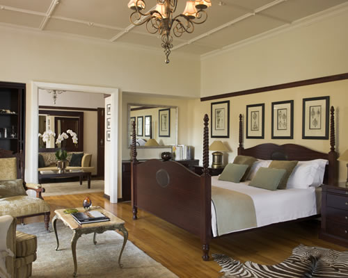 The Manor Knacke Suite boasts ocean and mountain views from the North balcony, ocean and garden views from the enclosed West balcony. This suite features a lounge with fire place, a king size four poster bed, twin wardrobes, dressing room and an en-suite.