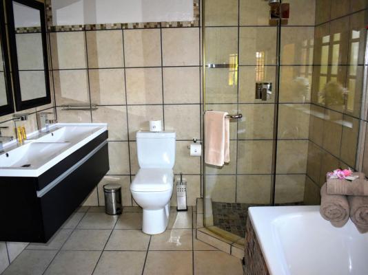 Semi self-catering with kitchenette. Private bedroom with queen bed, en-suite bathroom bath and shower, lounge with fireplace and 2 three quarter beds adjacent to the sitting area. Garden view. Ideal for a lovely family getaway.
