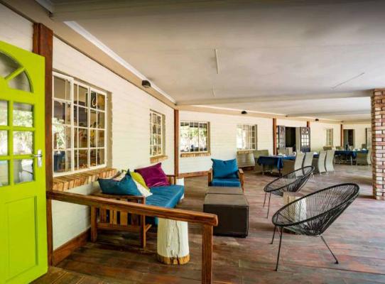 A highlight at the end of the day is to ascend the hill to a viewing platform for a sweeping vista of the mopane woodland illuminated by the setting sun. It also is the best spot for a sundowner drink and to gain a view of the intriguing construction of the lodge. As the day darkens it’s time to return to the restaurant where a fire burns in a grate and a delicious supper awaits - served with a fine selection of fresh vegetables and herbs! Damara Mopane Lodge is a Damaraland lodge that charms guests with its original themes, touching hearts and eliciting smiles. Whether sitting on your stoep looking out onto your vegetable garden, swimming in the pool or celebrating sunset from the deck, this novel and delightful lodge provides a good base from which to explore the rich sandstone treasure of Damaraland.