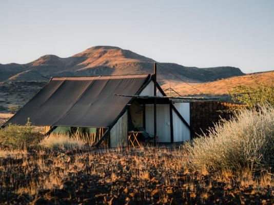 In the foothills of the Grootberg massif, in stunning scenery set amidst the ancient Etendeka lava flows of northern Damaraland, you will find Etendeka Mountain Camp. Here the ancient basalt has been slowly eroded over millennia, leaving scattered boulders lying upon dramatic flat-topped mountains.