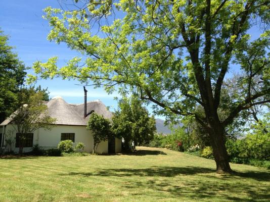 Accommodation at Fisaasbos: The recently renovated thatched cottage, perched on the hilltop overlooking the valley and guarded by the peaks of the Winterhoek, has served as secondary house and bachelors cottage to the main farm since the 1940s.