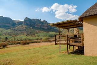 Self-catering chalets and bedrooms. Surrounded by the Rooiberge and Maluti mountains in the highlands of the Eastern Free State. Facing the spectacular sandstone hill with the outcrop shaped as a camel's head (giving it it's name).