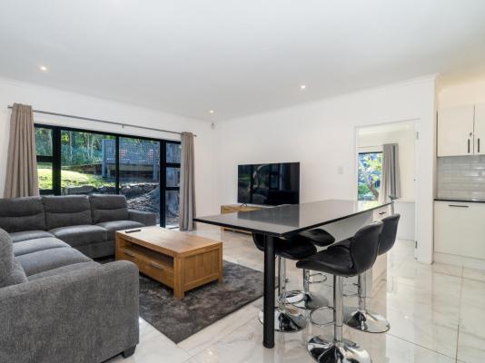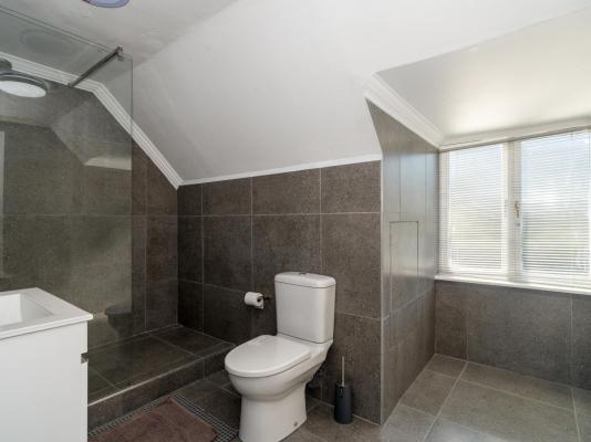 This lower level room contains a king-size bed, a three-quarter sleeper couch, a work desk, and a Smart Android TV. The room has an en-suite bathroom with a shower and bath. Free fibre Wi-Fi is available. This room has a view of the mountain.