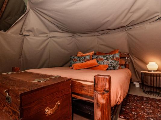 Patsy, the bus, has a comfortable bedroom with a double bed, a bathroom with a shower and toilet, a kitchen with a fridge and stove. Outside is a paved area in which guests can eat and enjoy a braai. Patsy is set in a tranquil garden overlooking one of the grey water ponds, where you can watch the abundant birdlife.