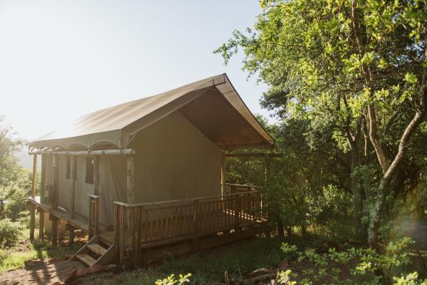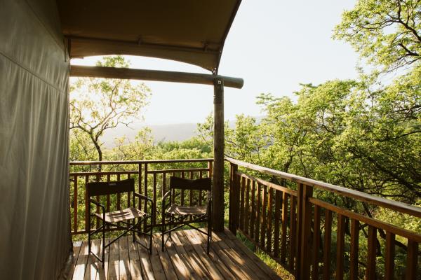 The lodge offers guests a tented camp a choice of tent chalets that can accommodate between 2 to 3 people. The chalets are furnished with twin beds which can be converted into king-size beds. Each of the chalets has an en-suite bathroom with a shower, a basin, and a toilet, and amenities such as shower gel, liquid soap, and shampoo are provided. The chalets are fitted with tea- and coffee-making facilities and opens onto a deck with beautiful views of the bush and surroundings.
