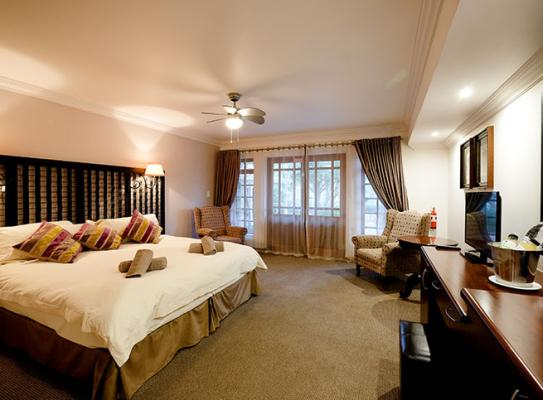 There are 5 deluxe guest rooms with king-size or twin beds, full en-suite bathrooms and comfortable seating areas in each. Each room opens onto a covered terrace with bistro style tables and chairs, overlooking landscaped gardens and dams with access to the nearby swimming pool.