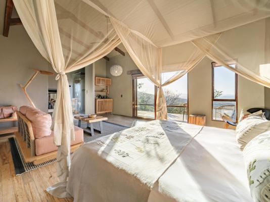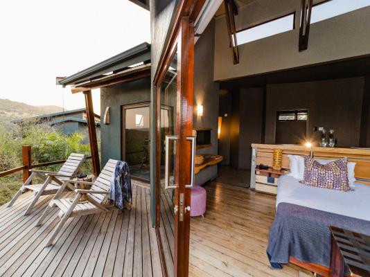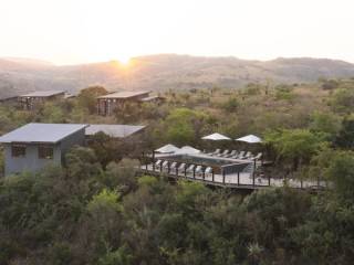 Rhino Ridge Safari Lodge is a private/community owned lodge in Hluhluwe iMfolozi Park commands spectacular views over 96 000 hectares of Big 5 territory and an active waterhole. A sense of peace & relaxation is exuded by the chic eclectic design of the lodge. A maximum of 36 guests are accommodated in either Honeymoon Bush Villas with private plunge pools, Luxury Bush Villas with lounge area, fireplace & private decks or Safari Rooms (ideal for families with young children). Twice daily game drives are conducted in the park home of White Rhino Conservation. Guided Bush Walks are highly recommended.