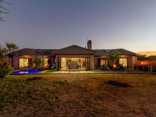 Experience the ultimate getaway where comfort meets nature in this stunning 4-bedroom, 4-bathroom retreat. The lodge was designed and furnished with your comfort in mind to give you the relaxing bush escape you deserve. Each air-conditioned bedroom features its own en-suite bathroom, offering privacy and relaxation for every guest. A sofa bed can be arranged for two children. The king-size beds can be converted into twin beds upon request. An open-plan kitchen designed for both cooking and connection, this space blends seamlessly into the living and dining areas so the chef is never tucked away from the action. The kitchen is fully stocked, with generous counter space, oven, an oversized fridge, and cabinets neatly organised with every tool, utensil, and spice(please bring your own) at hand. A large island sits at the centre, doubling as a prep station and a social hub, with bar stools inviting guests to gather, chat, and sip while meals are prepared. The cosy lounge with a Smart TV is perfect for unwinding, while the indoor braai in the dining area makes entertaining a breeze.
