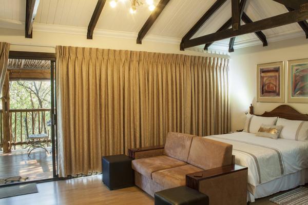 The Ultimate Romantic Break Away. This suite was designed to create an atmosphere of comfortable, romantic, luxury. The queen size four-poster bed, crisp white percale linen, comfy chairs, double shower and built in Jacuzzi all cater to your sensual needs. The chalet is fully equipped, and also have barbeque facilities, air-conditioning, and DSTV. This beautiful and private chalet will ensure you have a truly memorable experience.