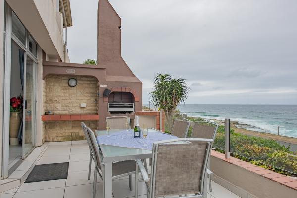 Full Sea and Breaker View * 50m from the Beach * 3 Bedrooms (1 queen and 4 single beds), 2 Bathrooms * Pool in Complex * DSTV Full Bouquet, Duel view, 2 TV sets, PVR * Charcoal braai * Washing machine, tumble dryer and dishwasher * non-smoking unit * covered patio.