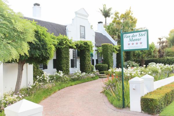 Van der Stel Manor is a lovingly restored Cape Dutch home (1910) in an exclusive residential area of Stellenbosch, close to the village. The air-conditioned luxury rooms are stylish decorated, each with private patio and direct access to the beautiful rose garden and pool. An exquisite breakfast served in a peaceful ambiance also light meals, superb wines, tea and desserts can be enjoyed.