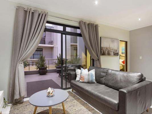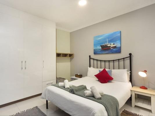 The location of this property puts it en route to the bustling city centre while providing its guests with all the magic Bloubergstrand has to offer. The kitchen and living area are open-plan, with two bedrooms and 2 bathrooms, the main bedroom has a double bed and en-suite bathroom, whilst the second bedroom has a single bed and access to a shared bathroom. There is a flat-screen Smart television, along with Wi-Fi internet connectivity to ensure a comfortable stay. All the essential appliances you will need for an unforgettable self-catering getaway are here for your convenience. The main bedroom and living area both lead onto the verandah, which makes for a lovely common area to unwind.